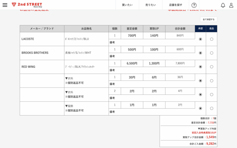 まず、今回は9点の買取を希望して、トータルの査定額は、9,282円です。
